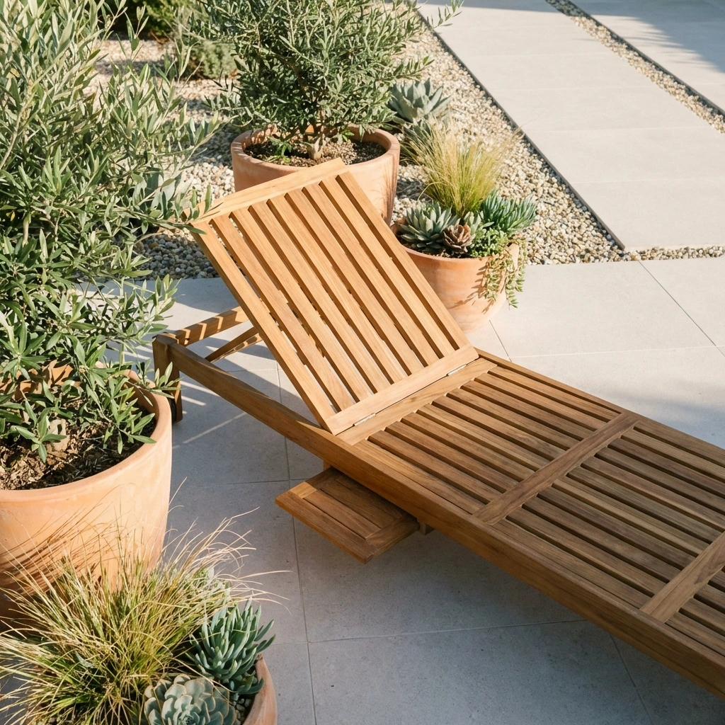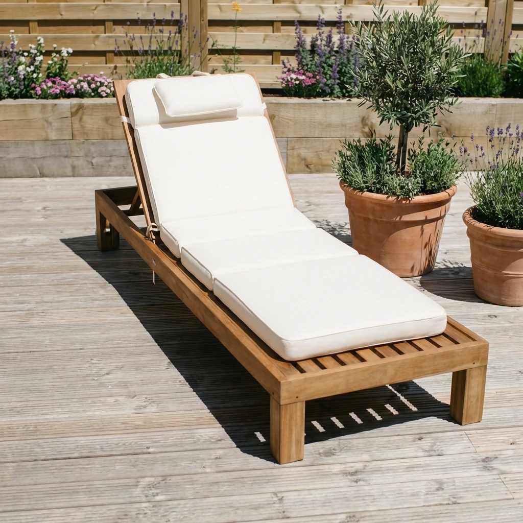 Certified Teak Outdoor Sun Lounger with Free CushionIn stock