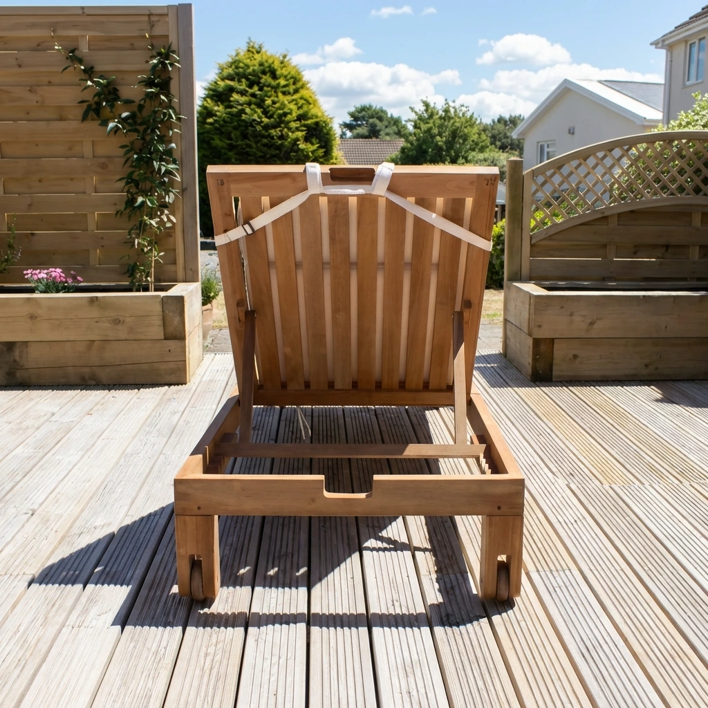 Certified Teak Outdoor Sun Lounger with Side Table & Free Cushion