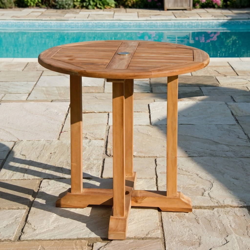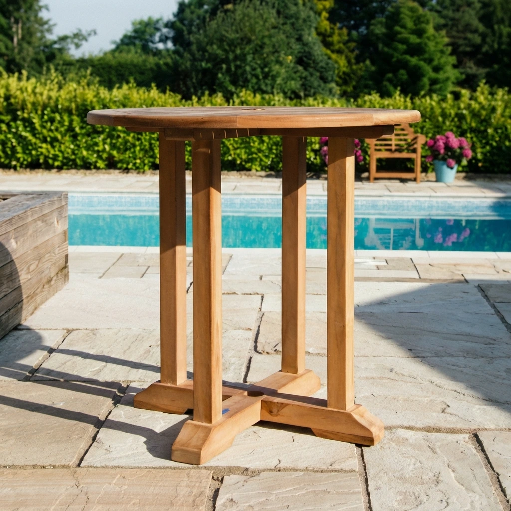80cm Certified Teak Outdoor Circular Pedestal Dining Table