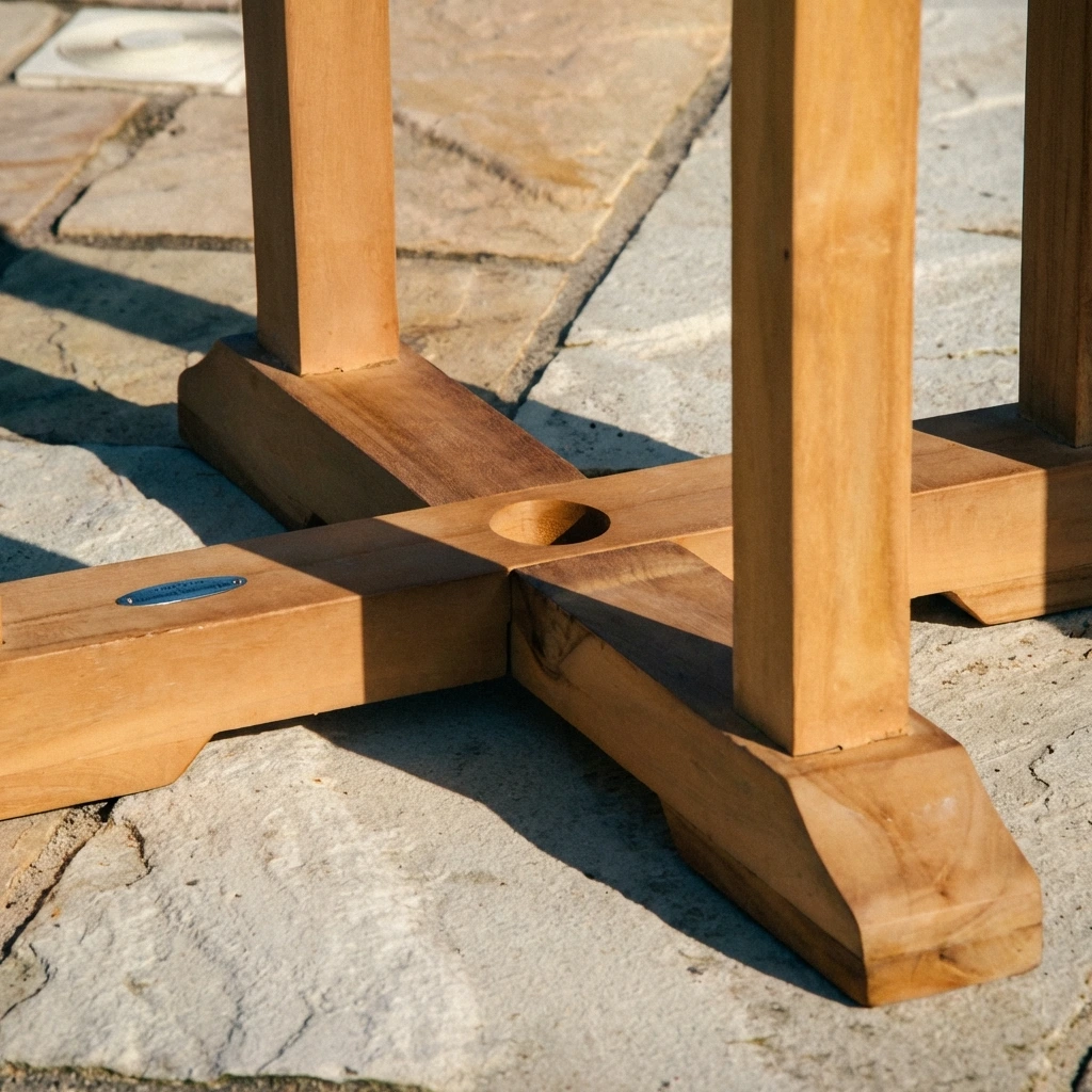 180cm - 240cm Certified Teak Single Extending Cross Leg Outdoor Dining Table with 6 or 8 Marley Teak Stacking ChairsIn stock