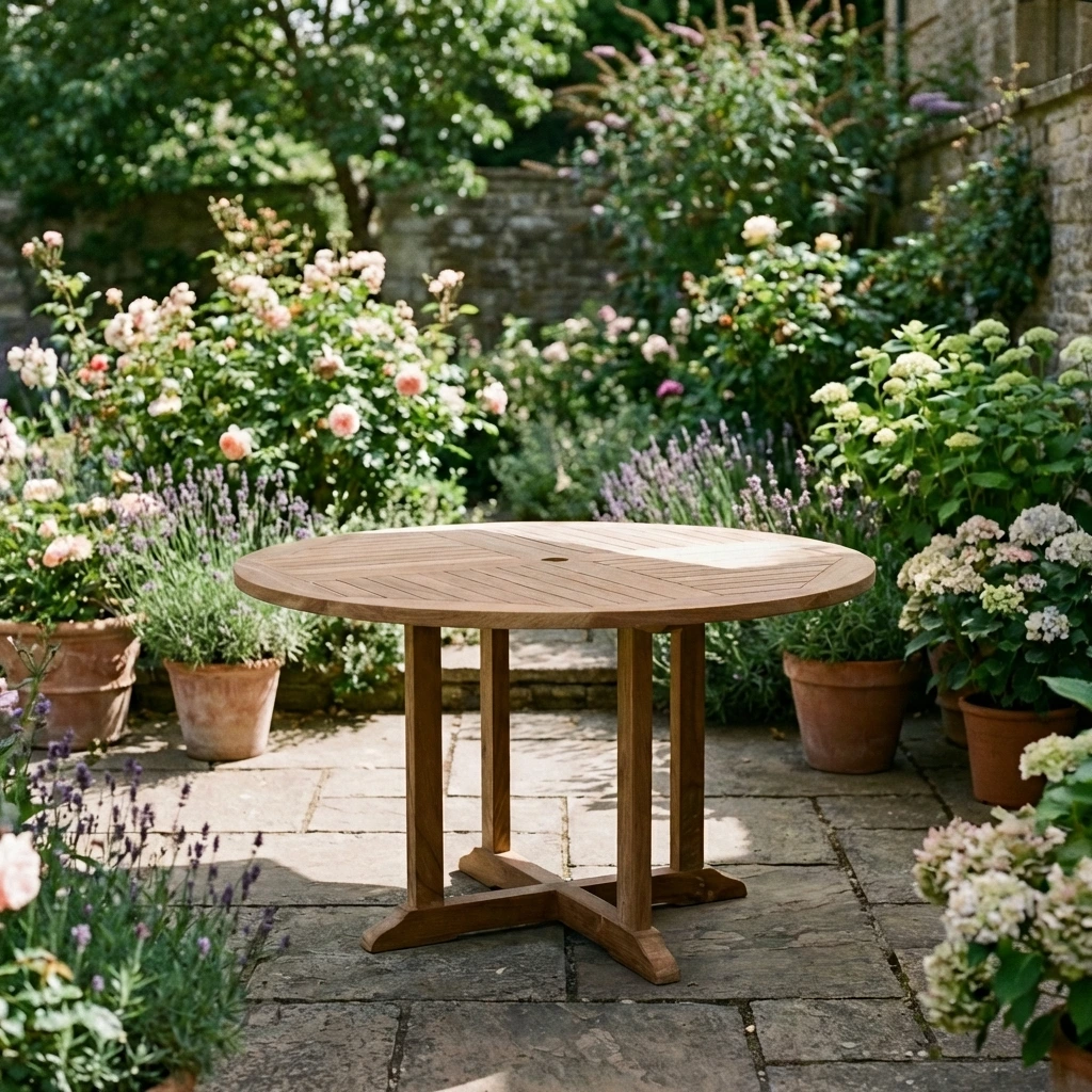 120cm Certified Teak Outdoor Circular Pedestal Dining TableIn stock