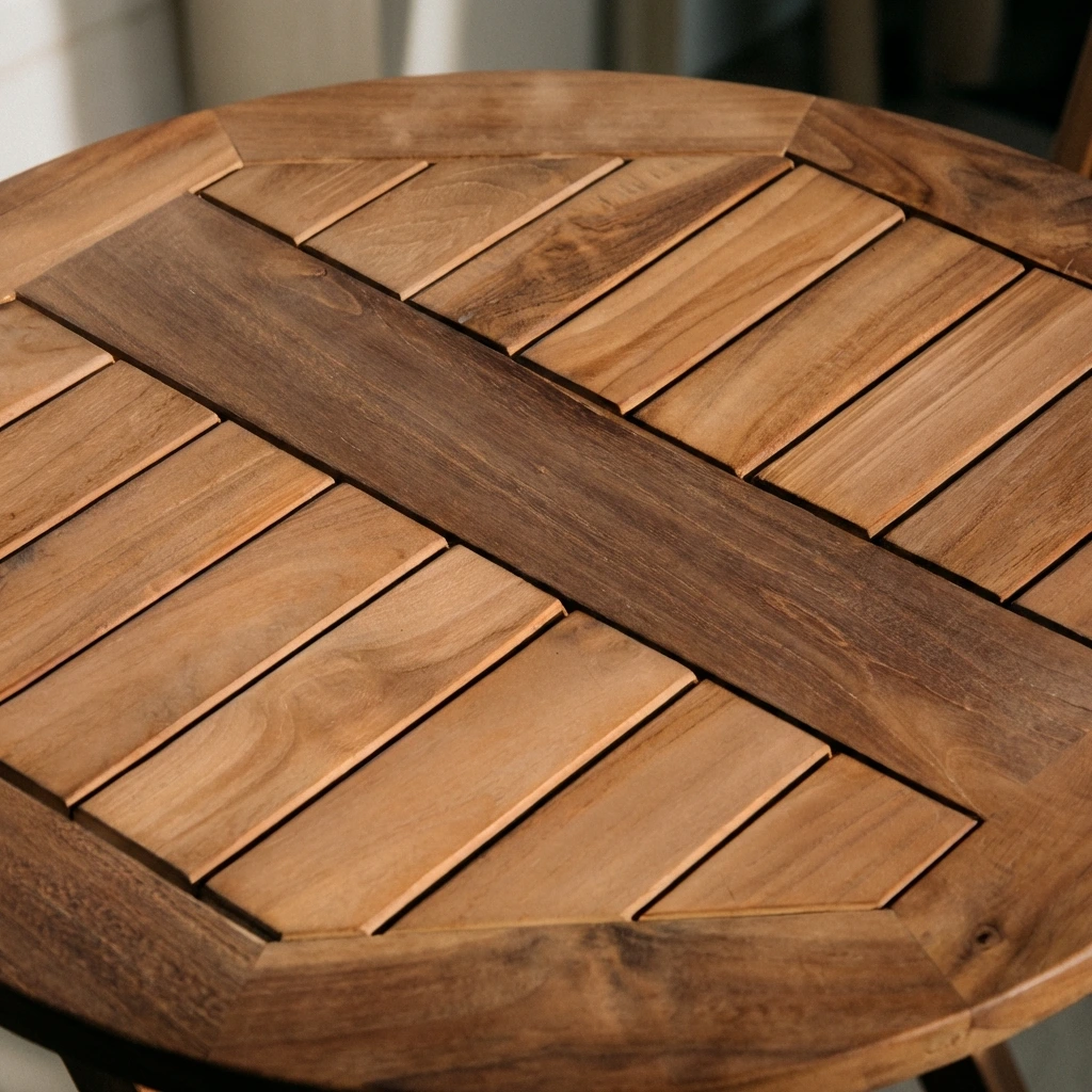 120cm Certified Teak Outdoor Circular Folding Dining TableIn stock