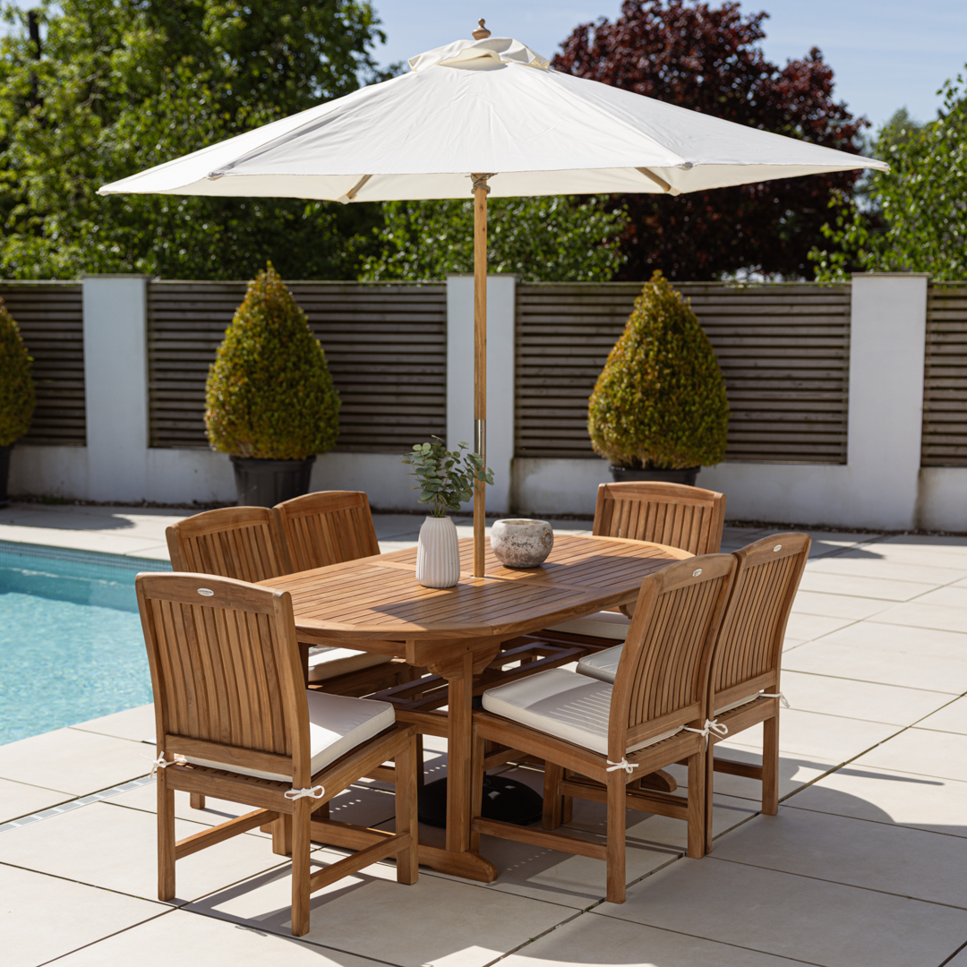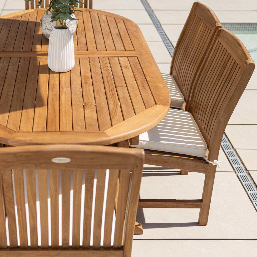 190cm Oval Certified Teak Outdoor Dining Table with 4 or 6 Marley Teak Stacking Chairs
