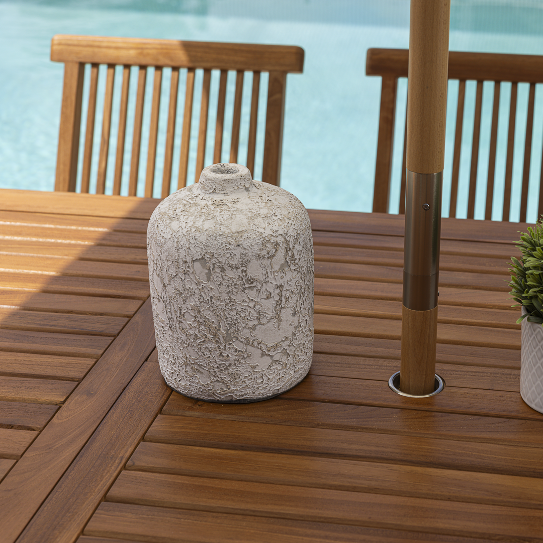 We choose Teak as a material for lots of our products because of its natural affinity to repel the elements as it’s naturally packed full of Teak oil which aids the longevity and durability of the product. Teak is well known for being a timber able to withstand any weather without further intervention and treatment.