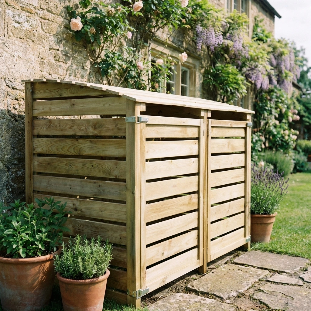 The Holyford Bin Store features strong tanalised FSC Certified Swedish Redwood construction with two front‑opening doors for easy access. Designed to conceal household bins stylishly, it provides excellent weather protection while enhancing garden or driveway spaces with natural rustic appeal.