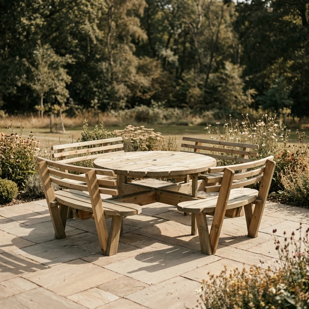 8 Seater Circular Tanalised FSC Certified Swedish Redwood Picnic Bench with Backrests