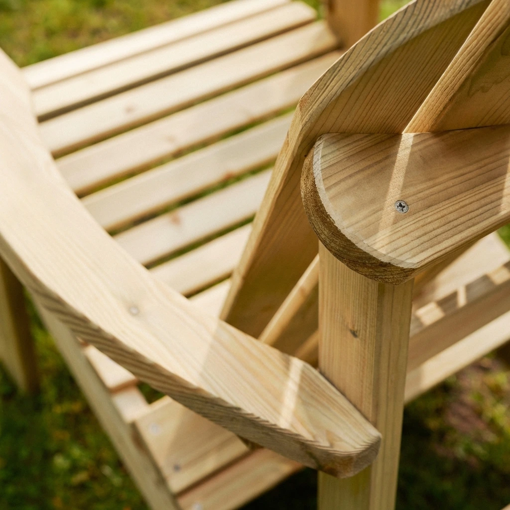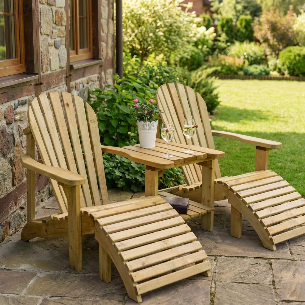2 Tanalised FSC Certified Swedish Redwood Adirondack Lounger Chairs Connected with a Side Table & Optional Footstools
