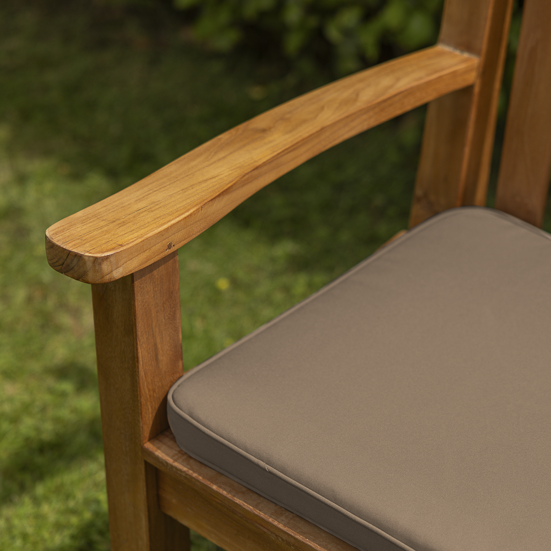 Certified Teak Outdoor Stacking Dining Armchair with Free Outdoor Seat CushionIn stock