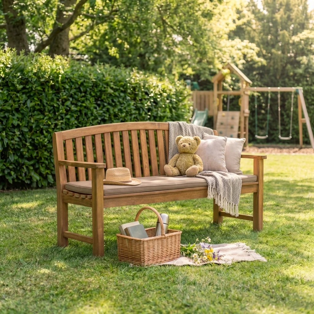 Certified Teak Outdoor Garden Bench with Curved Back DesignIn stock