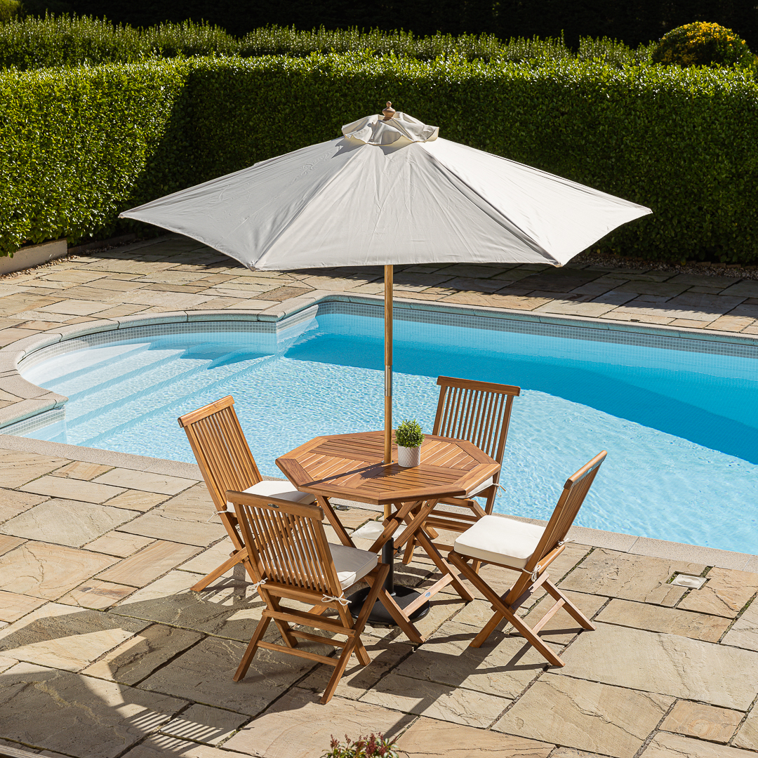 100cm Octagonal Certified Teak Folding Outdoor Dining Table with 4 Cora Folding Chairs