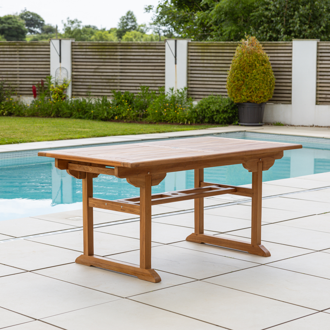 120cm - 180cm Certified Teak Outdoor Extending Dining Table with Butterfly Folding LeafIn stock