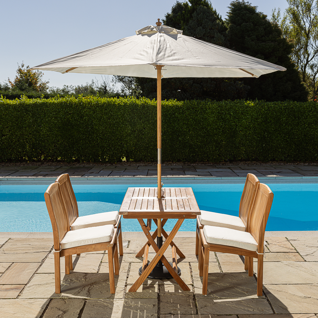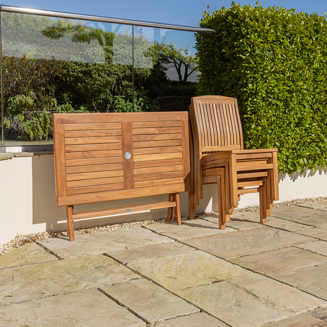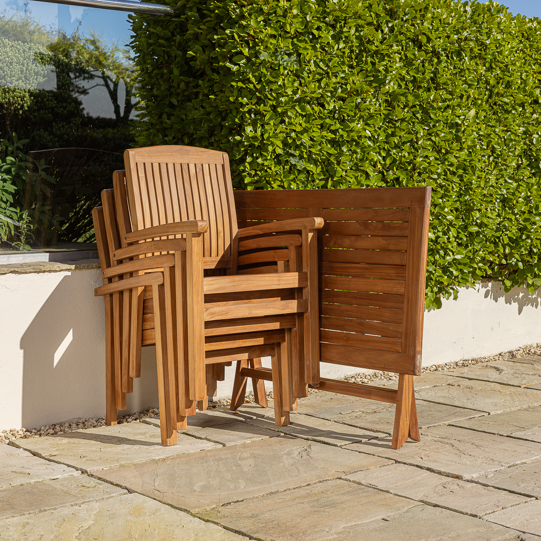 120cm Rectangular Certified Teak Folding Outdoor Dining Table with 4 Marley Teak Stacking Chairs