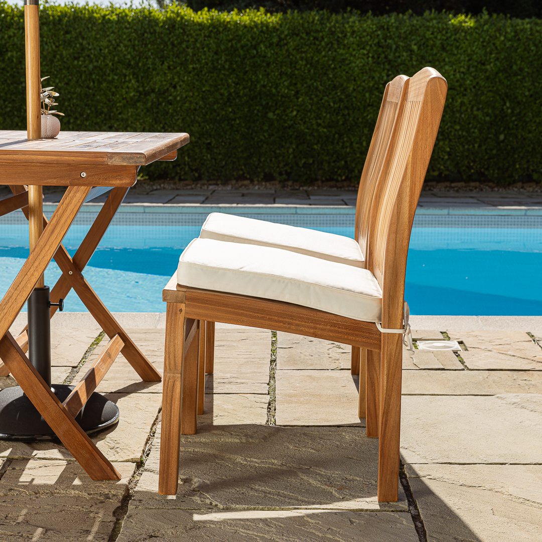 Two Certified Teak Outdoor Folding Dining Chairs with Free CushionsIn stock