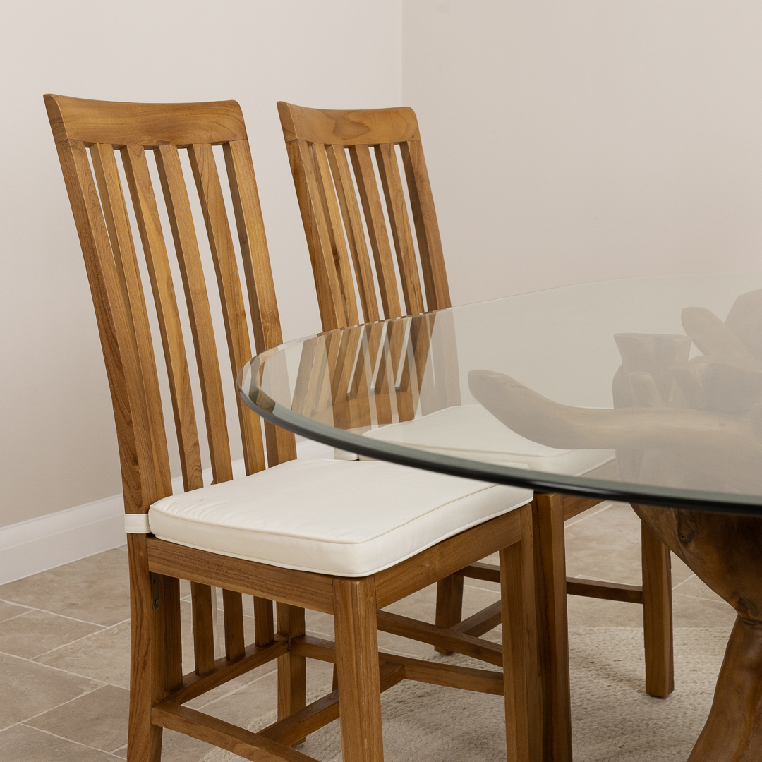 240cm x 120cm Rectangular Reclaimed Teak Root Indoor Dining Table with 10mm Toughened Safety GlassIn stock