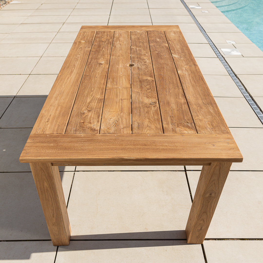 200cm Rectangular Natural Reclaimed Teak Outdoor Straight Leg Dining Table