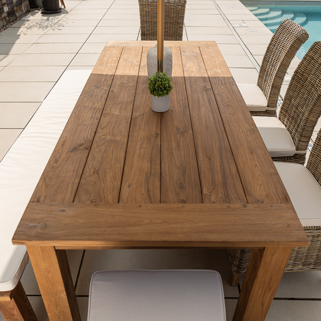 200cm Rectangular Natural Reclaimed Teak Outdoor Straight Leg Dining TableIn stock