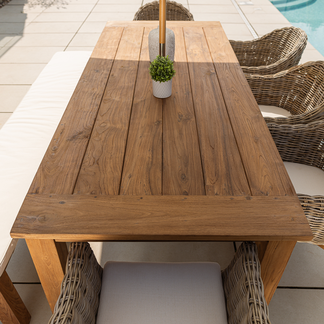 240cm Rectangular Natural Reclaimed Teak Outdoor Straight Leg Dining TableIn stock
