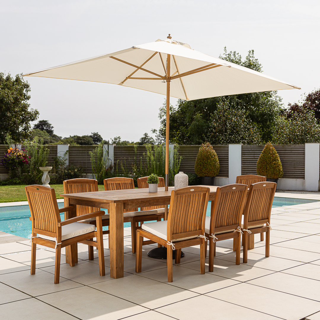 240cm Rectangular Natural Reclaimed Teak Straight Leg Outdoor Dining Table with 6 or 8 Marley Teak Stacking Chairs