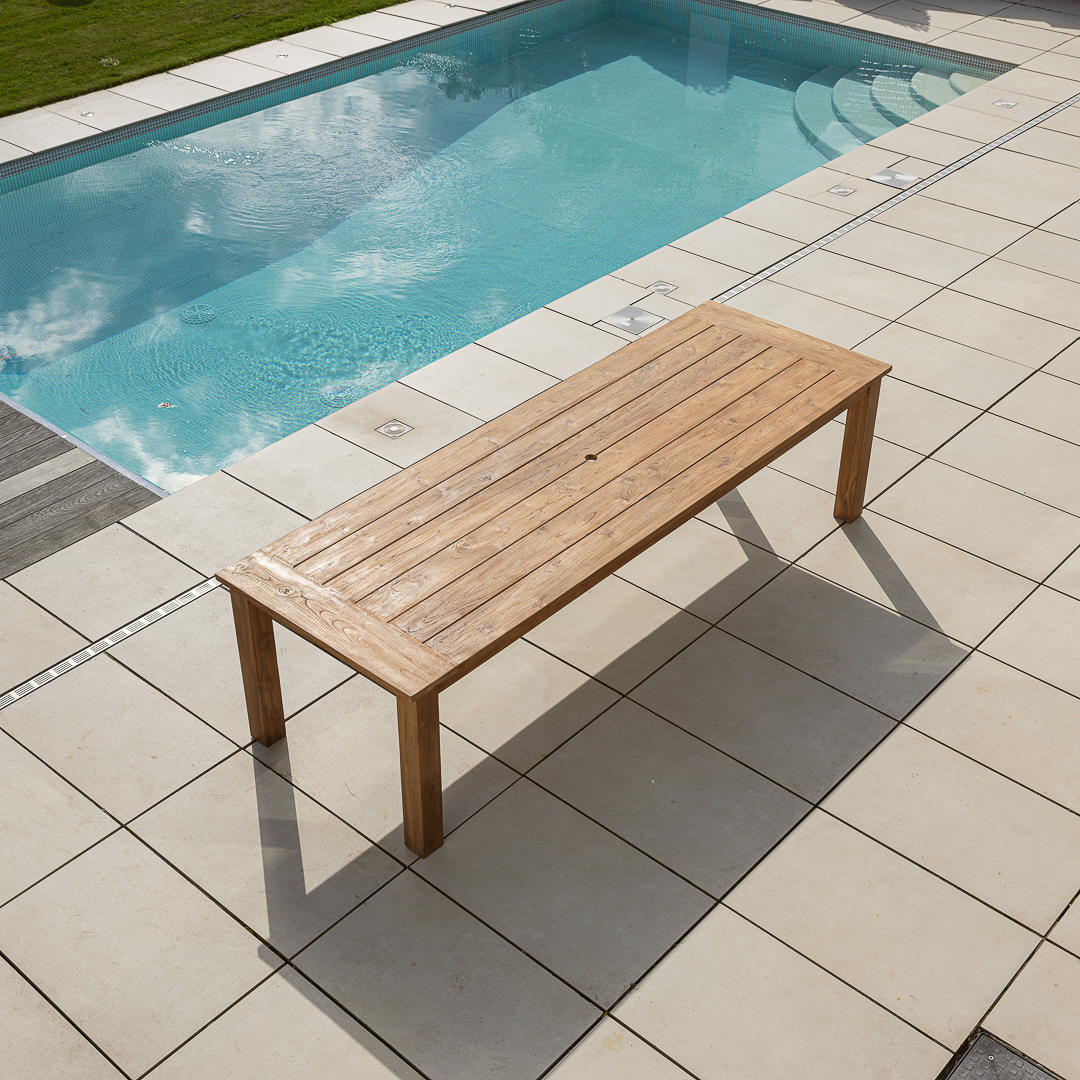 300cm Rectangular Natural Reclaimed Teak Outdoor Straight Leg Dining Table