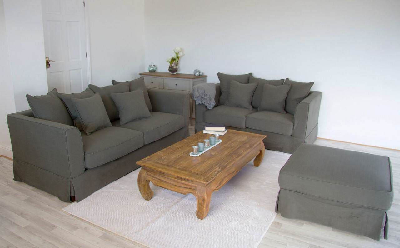 240cm Reclaimed Teak & Steel Sofa with Water Resistant FabricIn stock