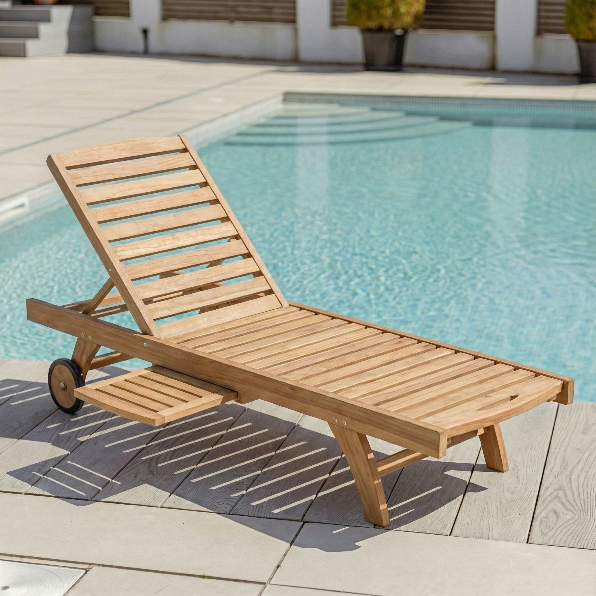 Certified Teak Outdoor Sun Lounger with Side Table & Free CushionIn stock