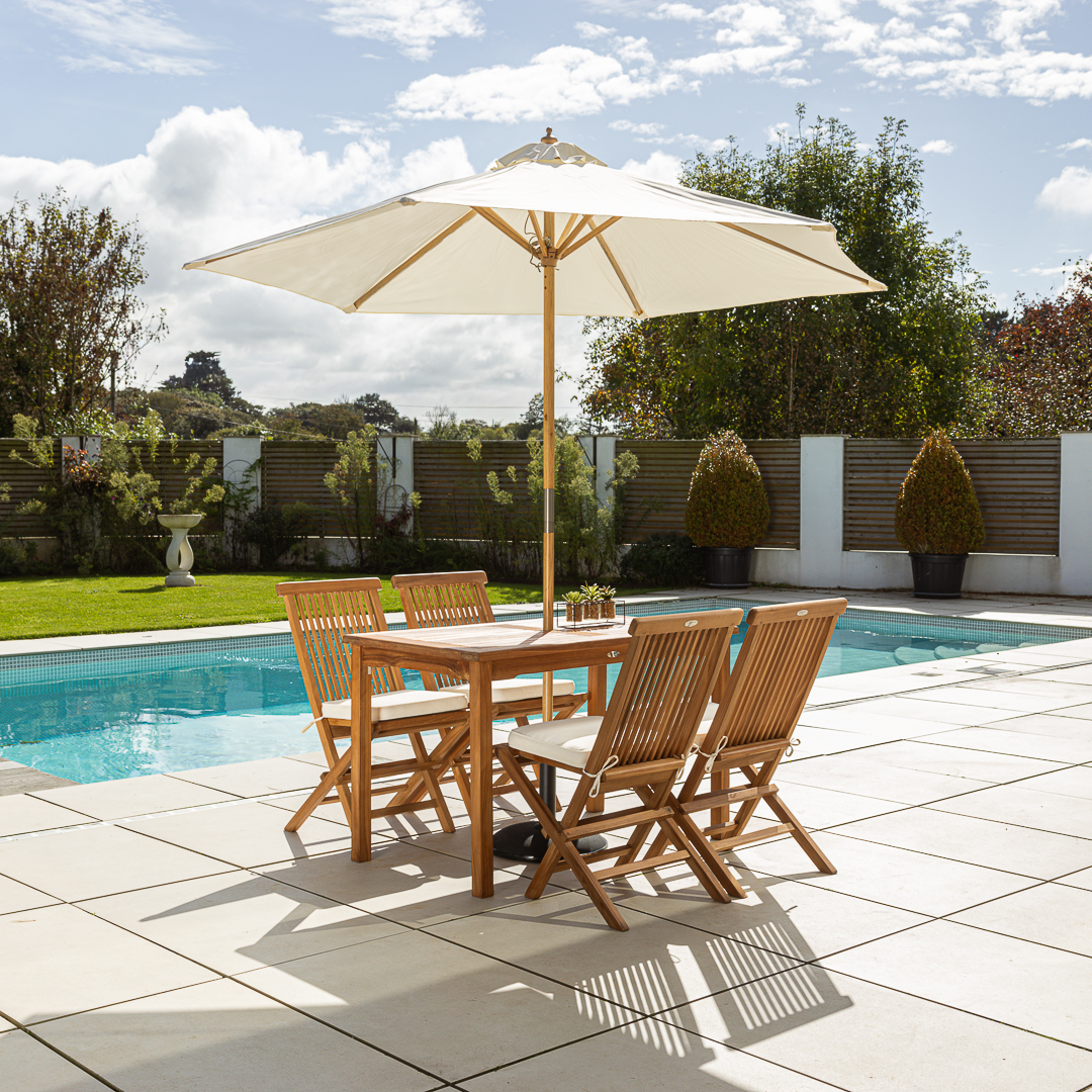 120cm Rectangular Certified Teak Folding Outdoor Dining Table with 4 Cora Folding ChairsIn stock