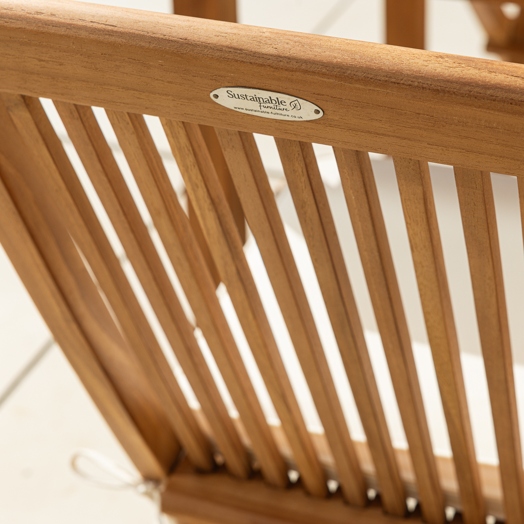 Two Certified Teak Outdoor Folding Dining Armchairs with Free CushionsIn stock