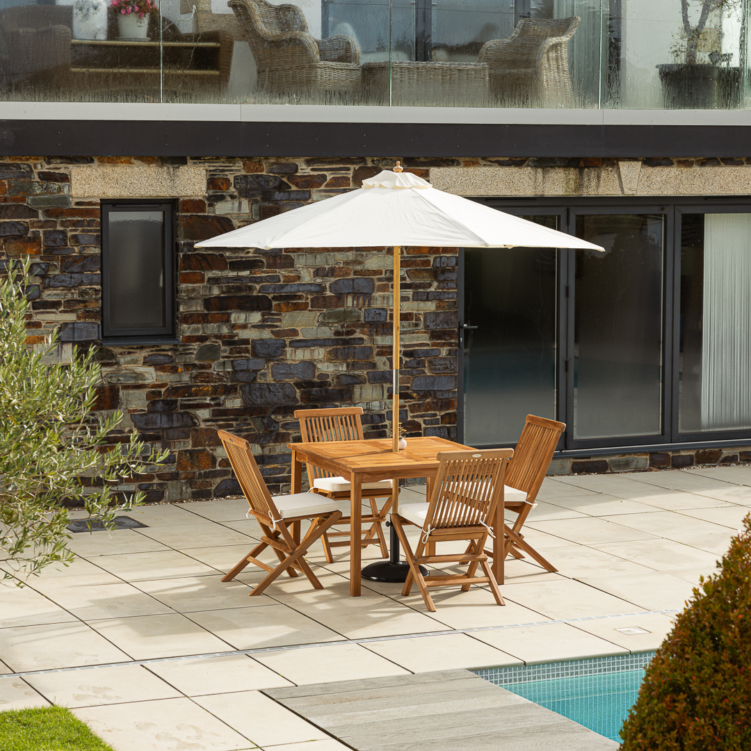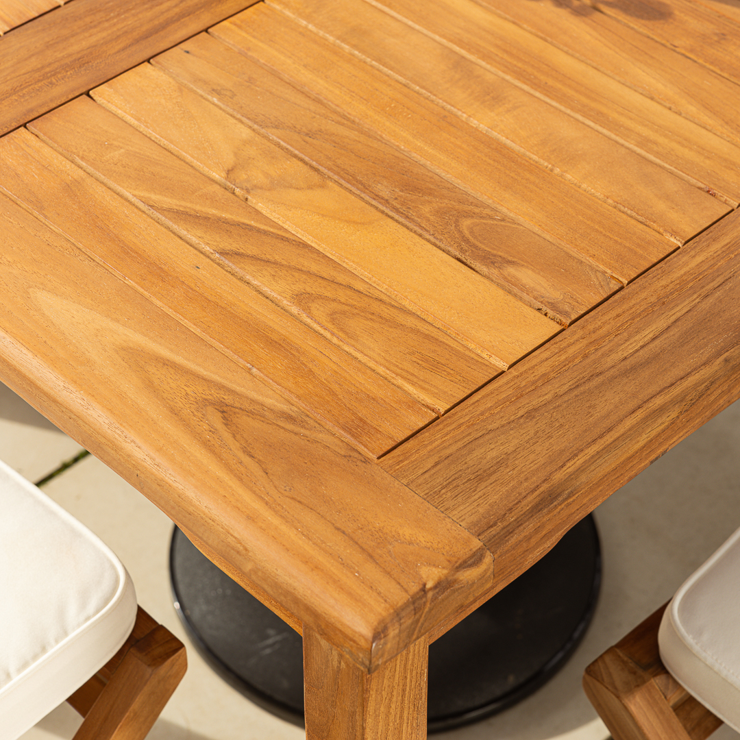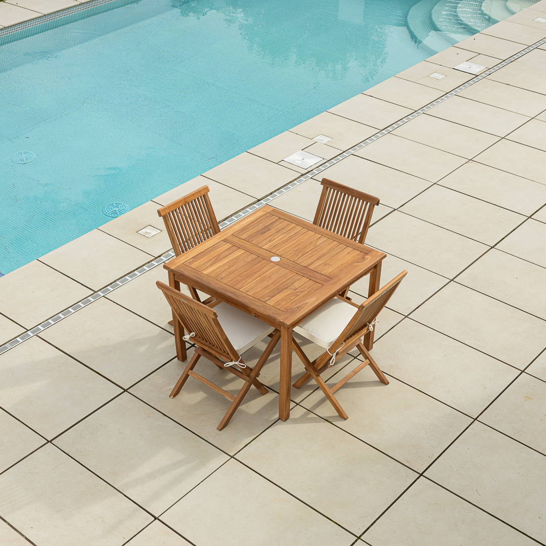 100cm Square Certified Teak Outdoor Dining Table with 4 Cora Folding Chairs