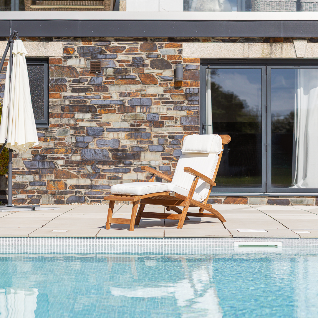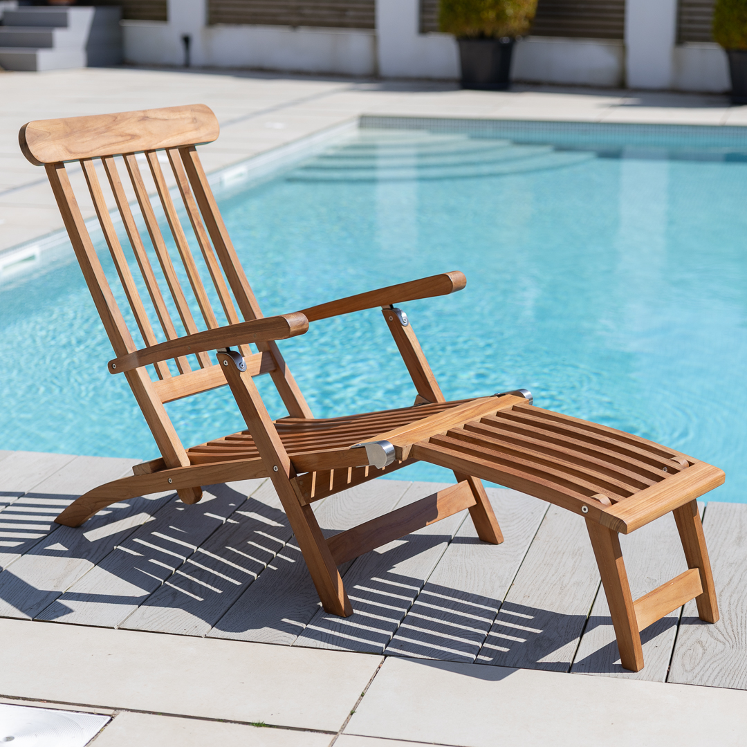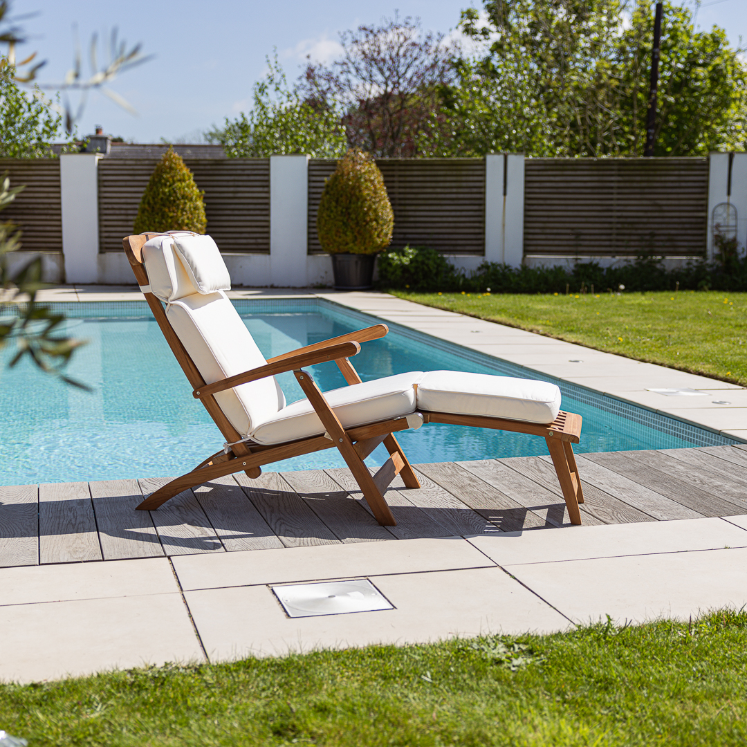 Certified Teak Outdoor Sun Lounger with Free CushionIn stock