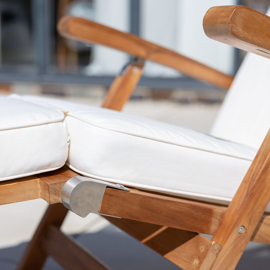 Two Certified Teak Outdoor Folding Dining Armchairs with Free CushionsIn stock