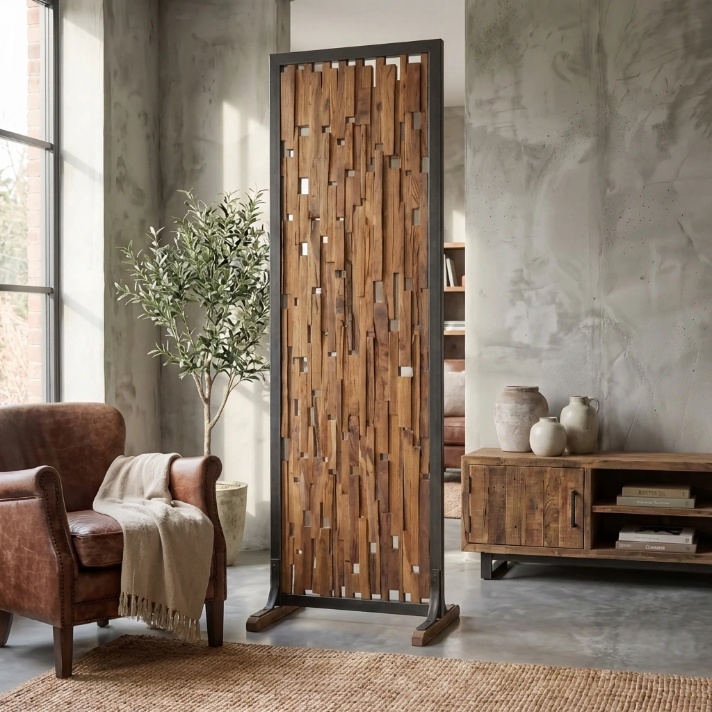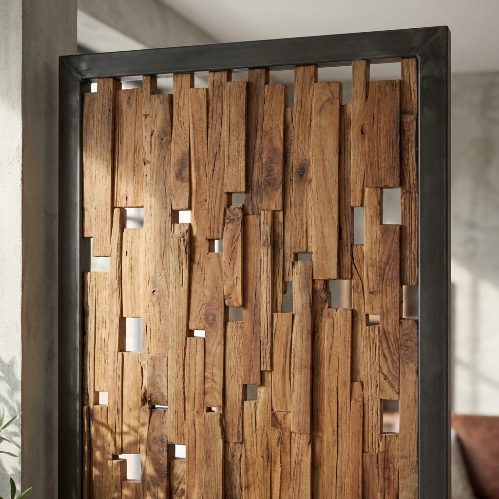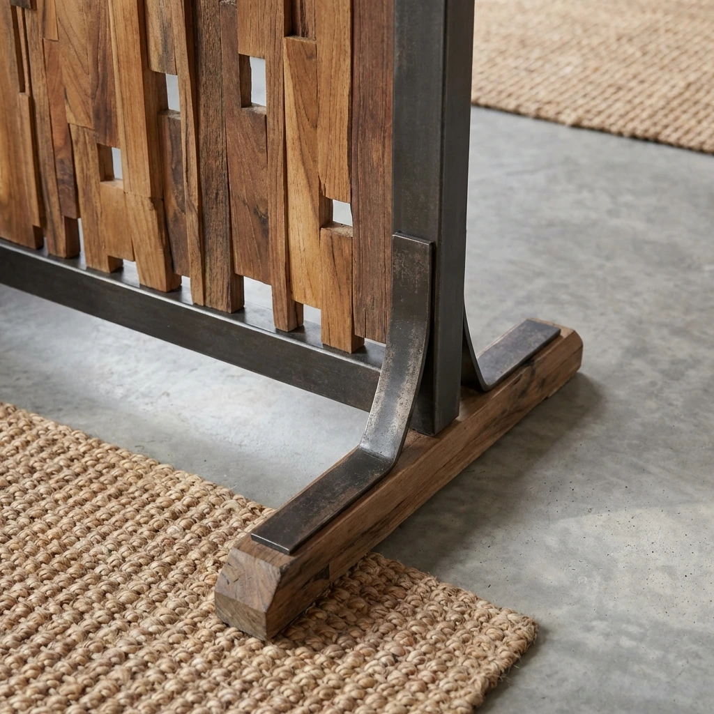 Free Standing Reclaimed Teak Piece & Steel Room Divider