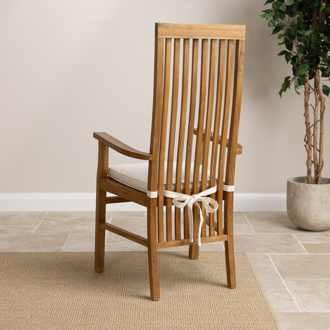 Rustic Reclaimed Teak High Backed Dining Chair with Indoor Seat CushionIn stock