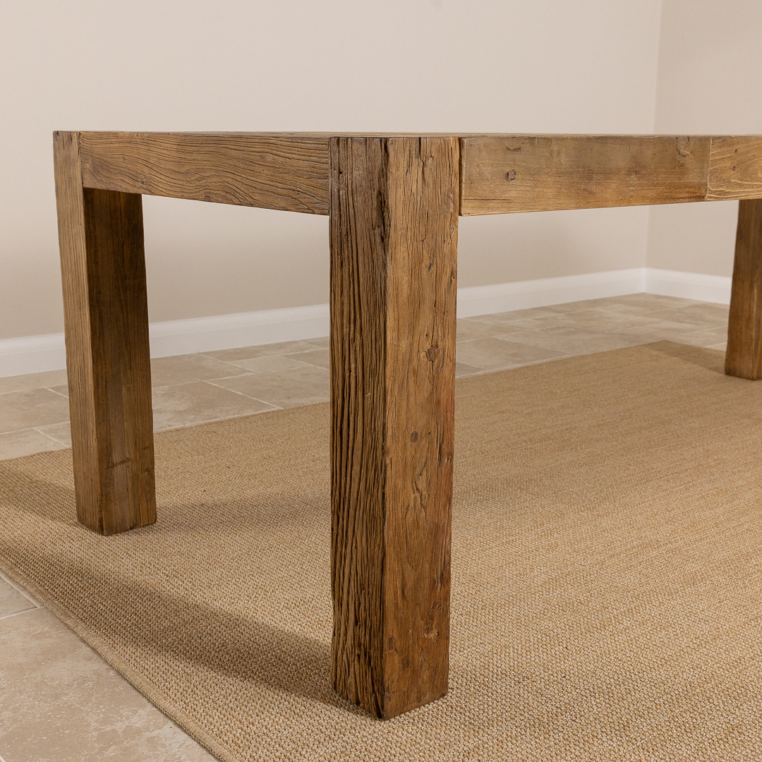 Manufactured from reclaimed Elm, which has been used previously for various purposes that have then been recycled and created into stunning pieces of furniture. Meaning the Elm that has been used has already been seasoned and weathered, making it a perfect, hard-wearing dining table that will suit the rigours of everyday busy family life. The chunky construction makes the Elm dining table an extremely sturdy statement piece that can be appreciated for years to come.