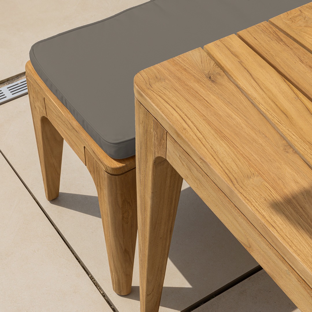 The Reclaimed Teak Oasis Dining Bench is a striking piece that combines sustainable craftsmanship with architectural elegance. Its gently arched design adds a graceful, architectural touch while offering comfortable seating for dining, gathering, or quiet moments of reflection. Built to withstand the elements, the Oasis bench pairs effortlessly with our Oasis outdoor tables or makes a striking standalone accent in your garden or patio.