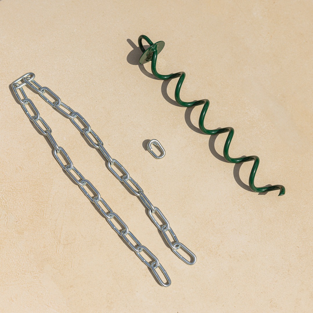 This Spiral style anchor kit is designed to be screwed into grass or it can be sunk into concrete for extra strong holding. The kit consists of a galvanised spiral, a heavy galvanised chain and an open link to join the chain. This anchor kit offers heavy duty anchorage for a multitude of requirements.