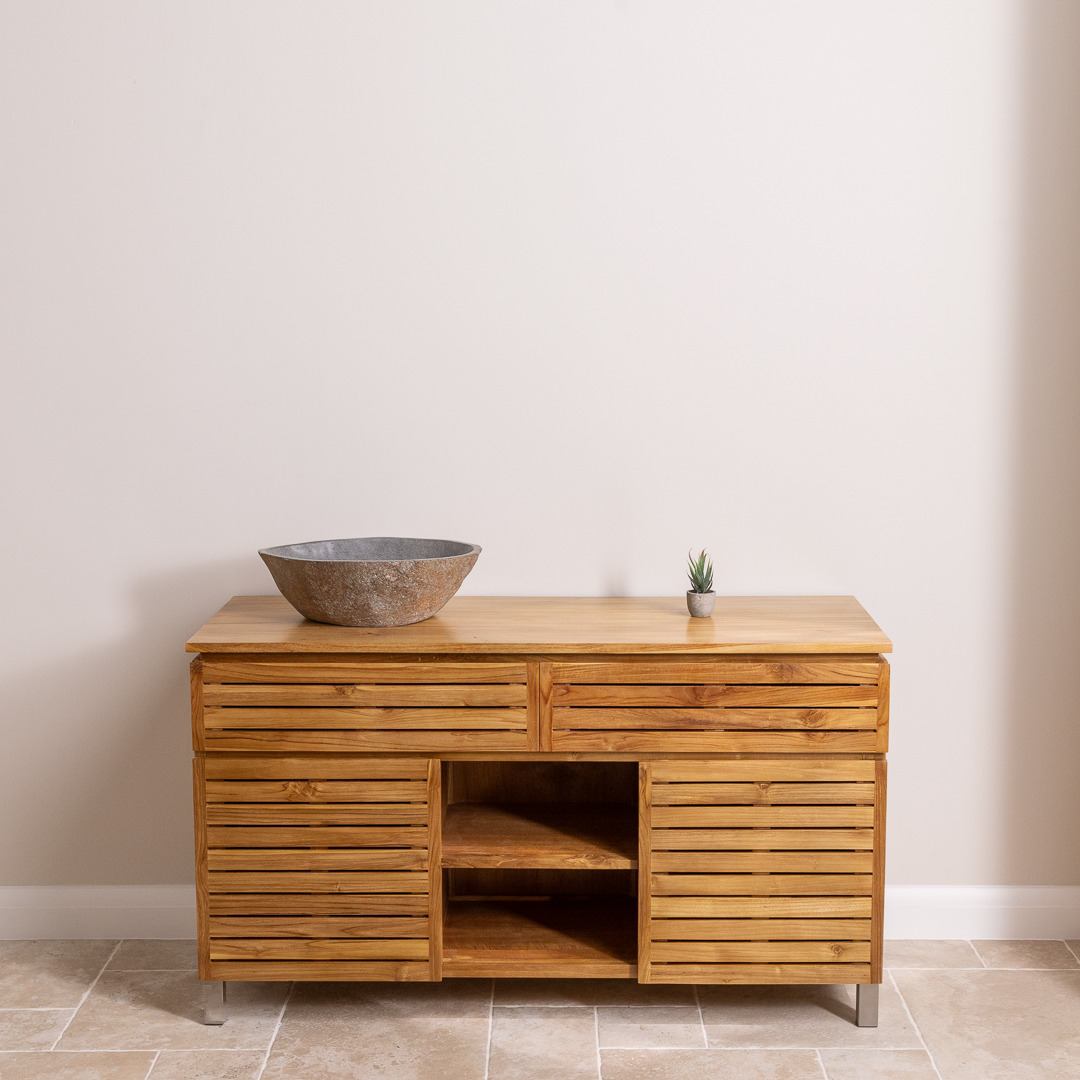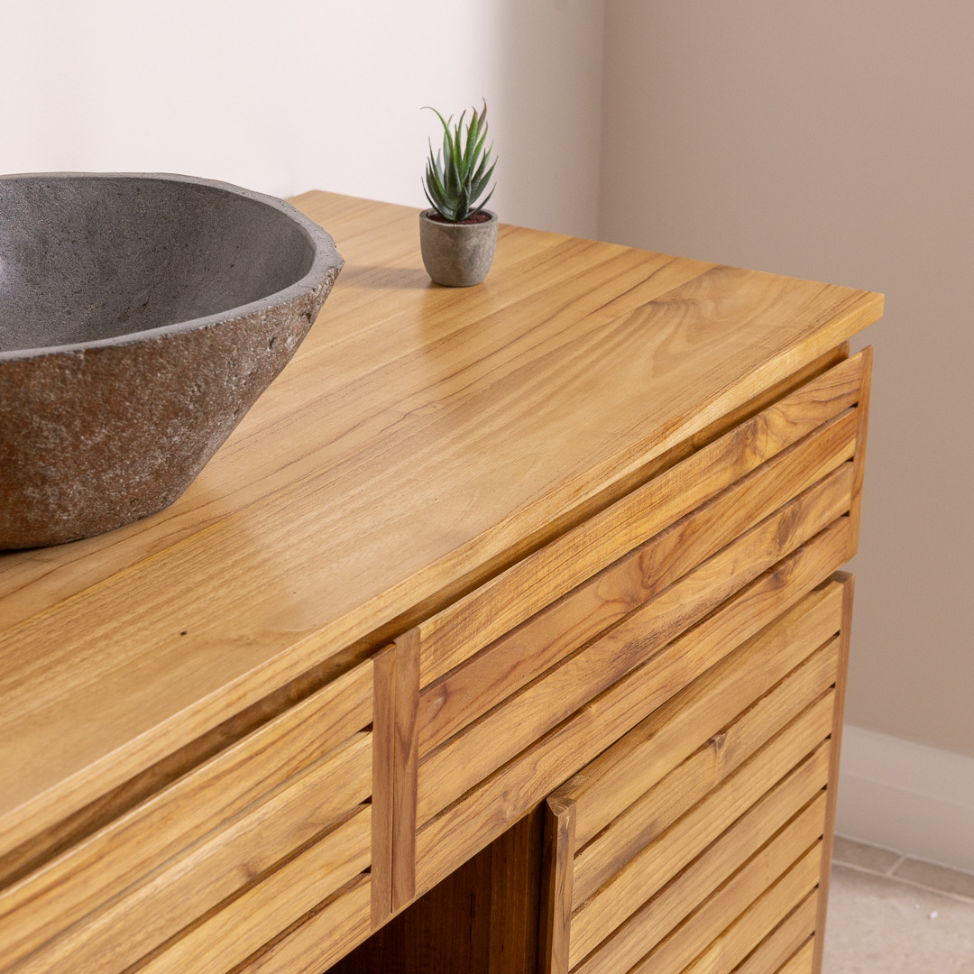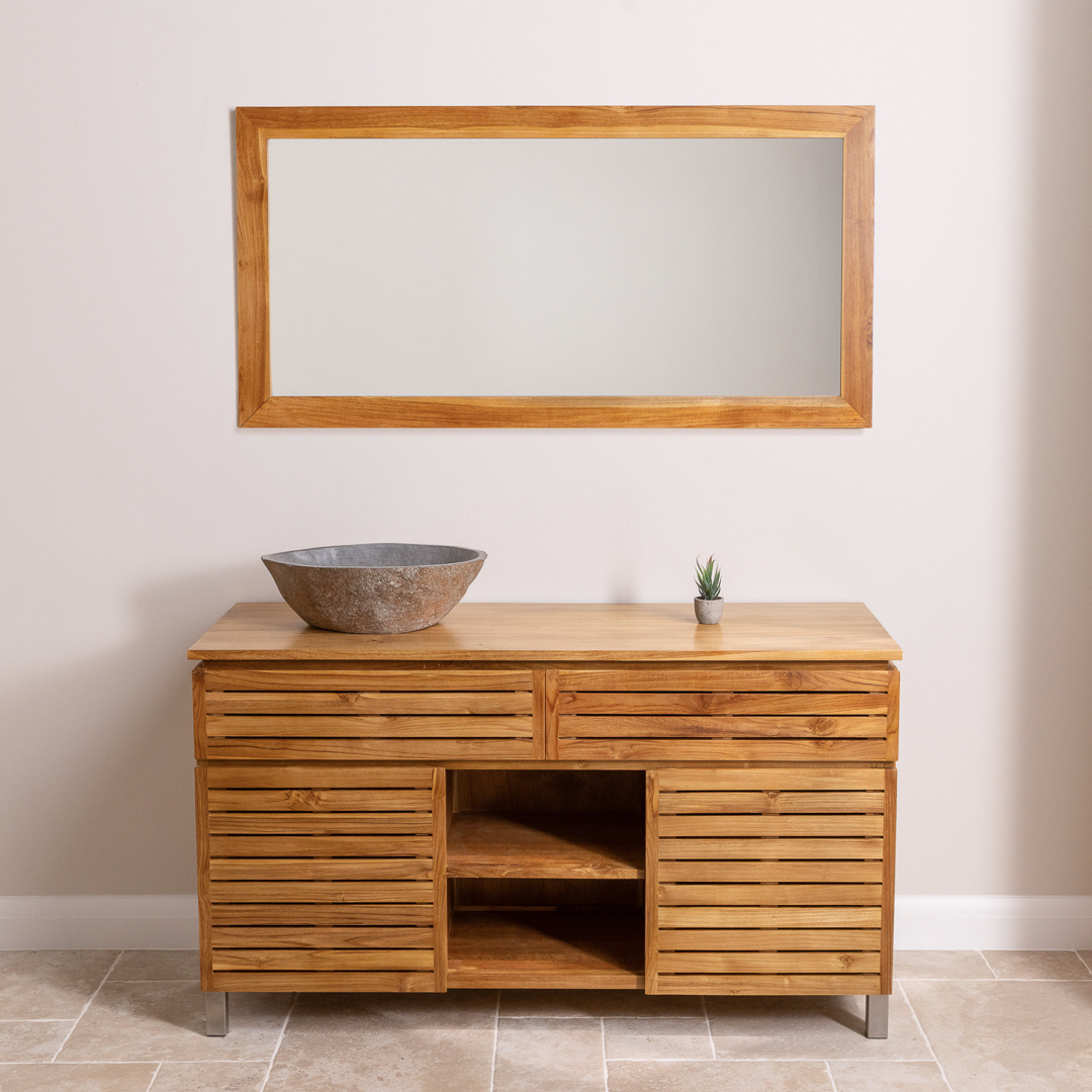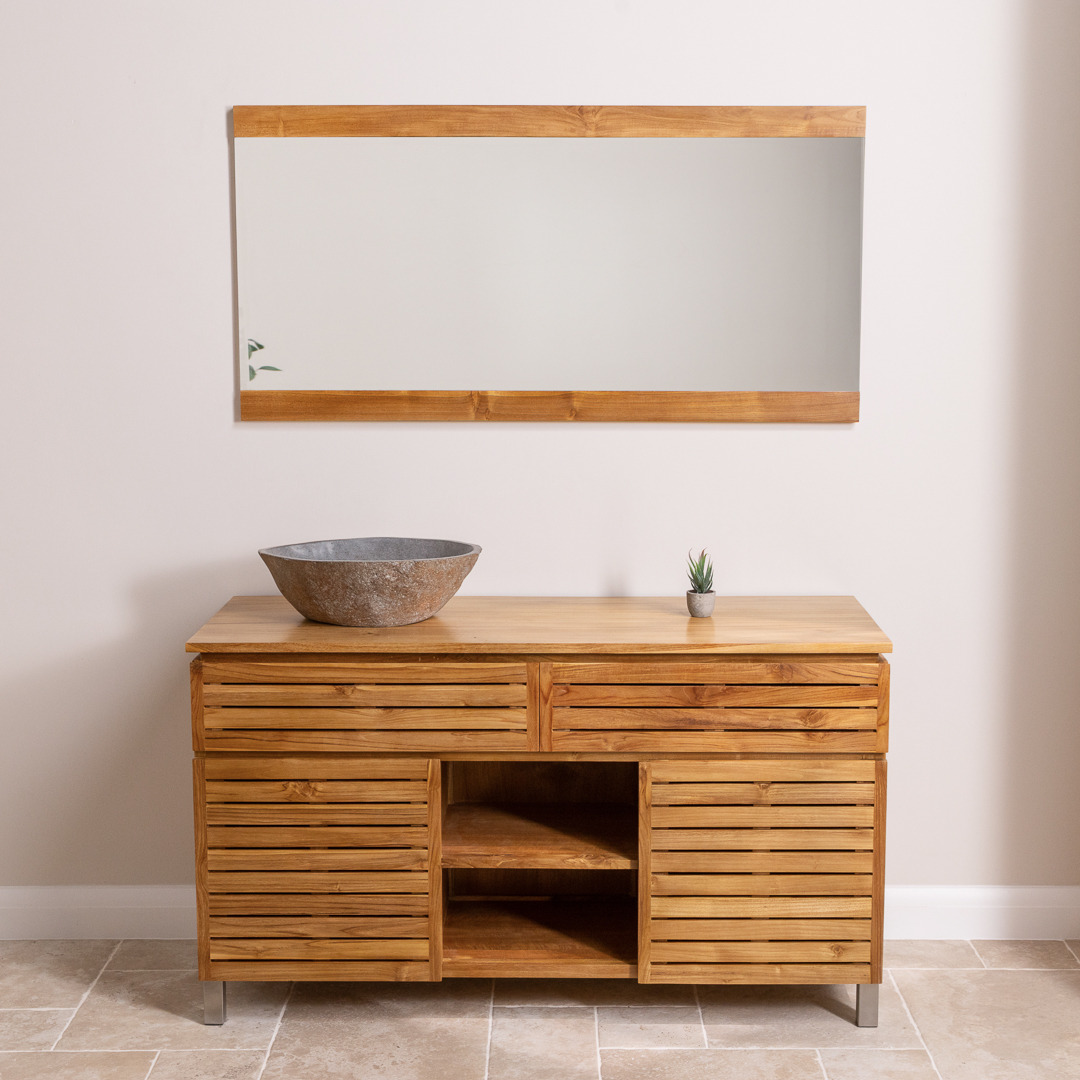 Teak naturally repels water, but to keep your new bathroom furniture looking its best, we recommend applying a clear sealer to the exposed timber. This will prevent watermarks and scratches whilst maintaining the natural colour of the furniture.