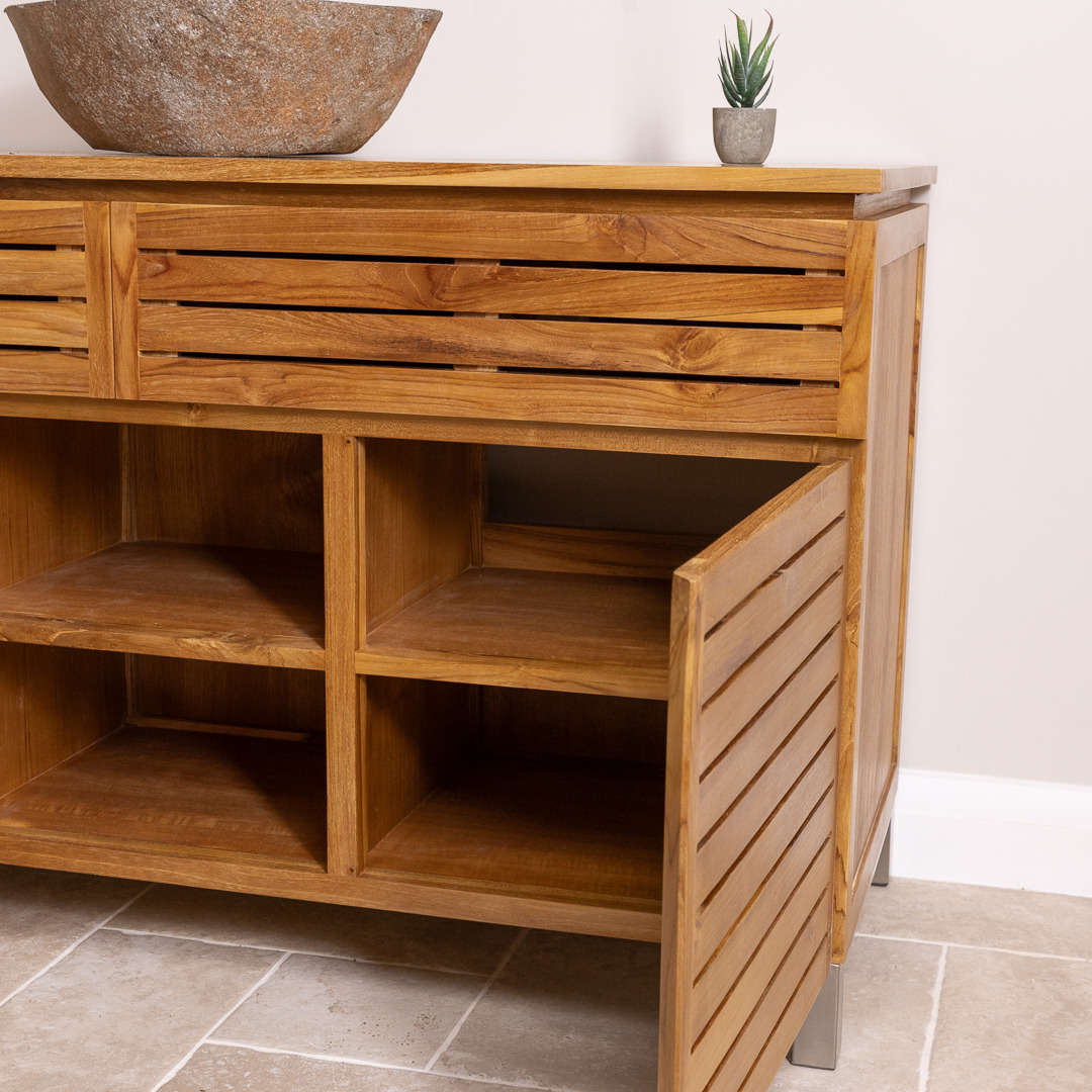 Turn your bathroom into your sanctuary with our Diva bathroom range, which expertly combines practicality with contemporary styling. This Lavish collection is manufactured from sustainably sourced Grade A Teak, with stainless steel legs and louvre-style cupboard doors to keep your bathroom on trend.