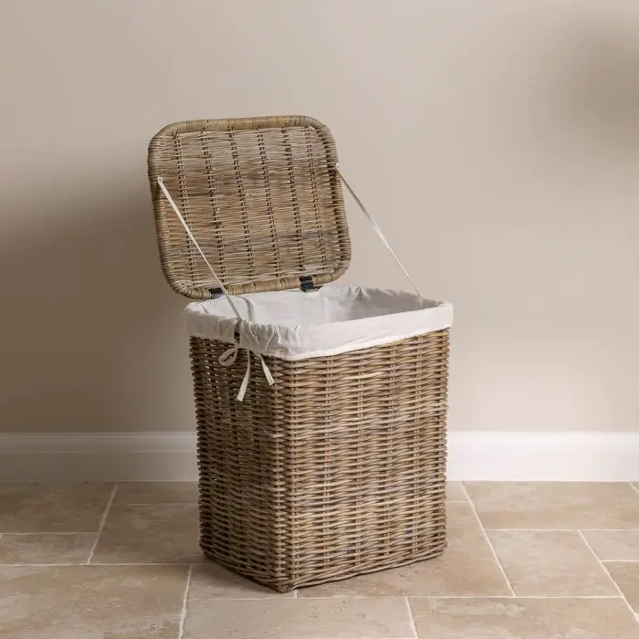 A beautifully crafted laundry basket manufactured from sustainable natural wicker Kubu. Keep your dirty laundry out of sight with this useful and stylish laundry basket. These laundry baskets will look good in the bathroom or the corner of your bedroom. Also useful for putting toys in and keeping them tidy or can also be used as a log basket. Comes with a linen insert which is removable and machine washable at 30°.