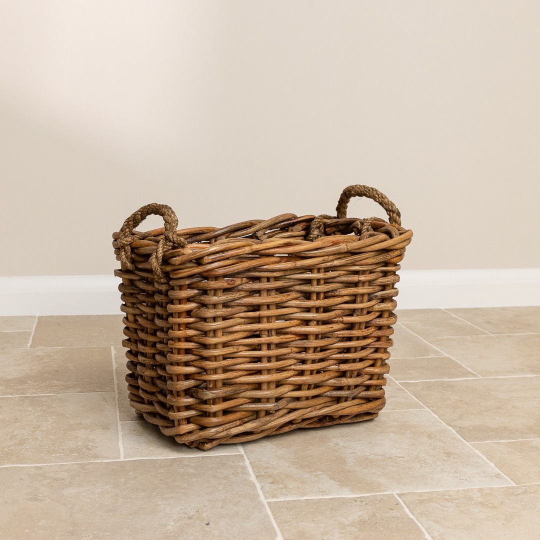 This pair of beautiful log baskets is the perfect storage for logs, kindling or fire accessories. Manufactured from sustainably sourced natural wicker with a thick and stylish rope handle, making them extremely robust and sturdy for heavy objects. The log basket pair can also be used for extra storage for laundry, shoes or toys.