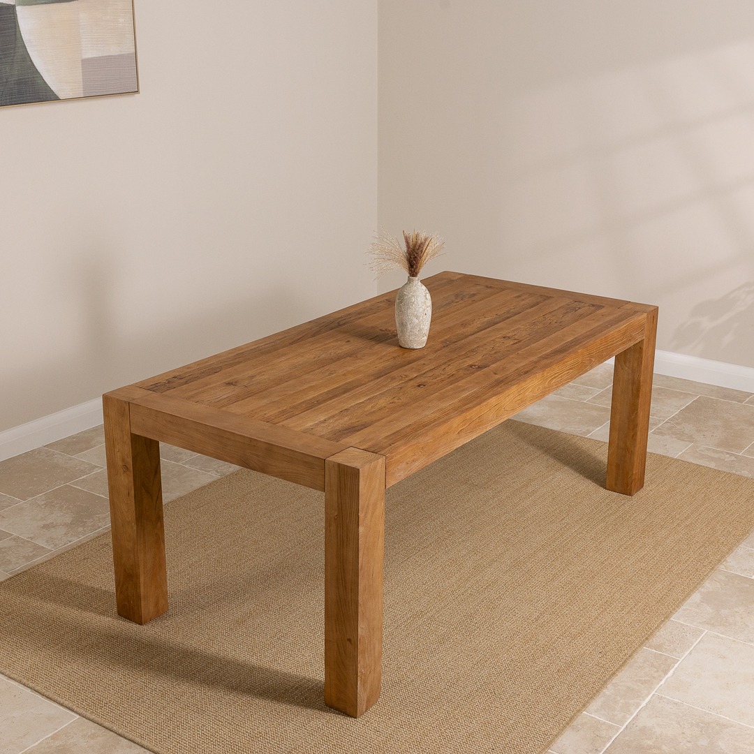 Manufactured from reclaimed Elm, which has been used previously for various purposes that have then been recycled and created into stunning pieces of furniture. Meaning the Elm that has been used has already been seasoned and weathered, making it a perfect, hard-wearing dining table that will suit the rigours of everyday busy family life. The chunky construction makes the Elm dining table an extremely sturdy statement piece that can be appreciated for years to come.