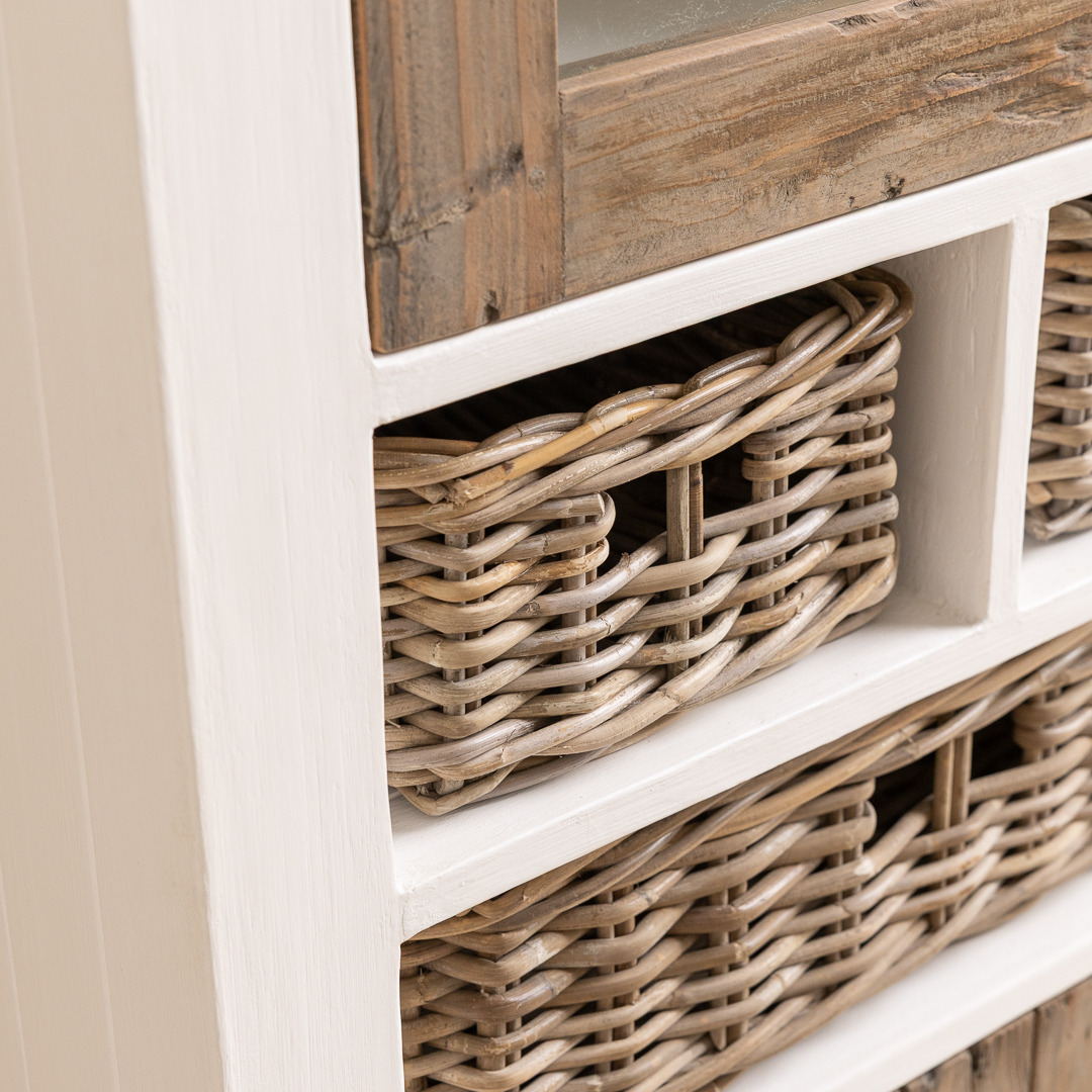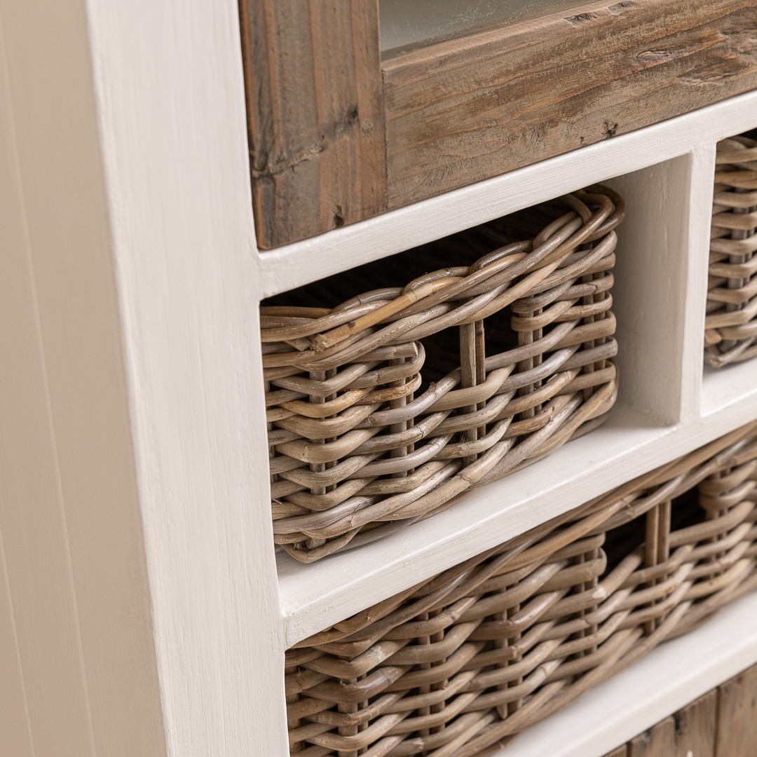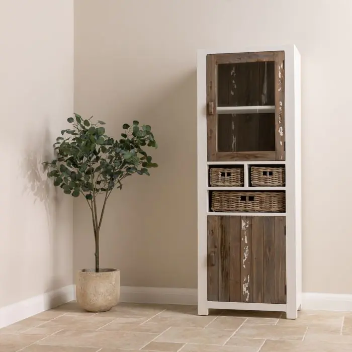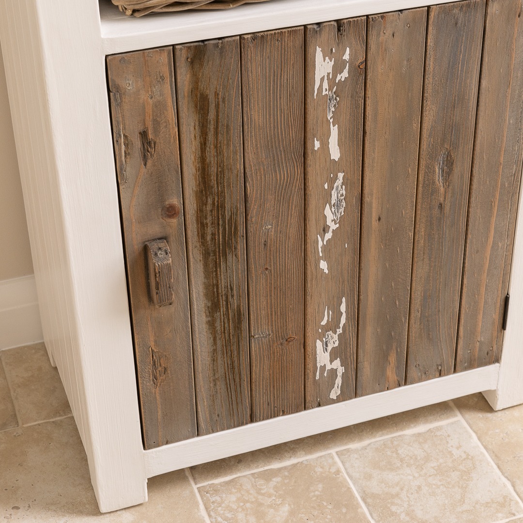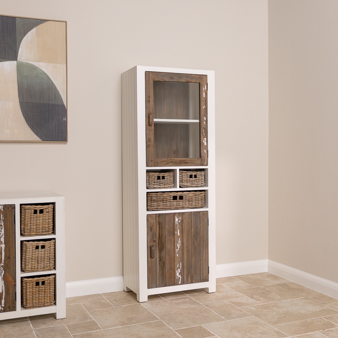 Our beautiful coastal style solid pine unit will breathe new life into your hallway, lounge or dining area, the perfect antidote to elaborate styling. Manufactured sustainably from Reclaimed pine with a grey wash distressed finish, giving you that sought-after relaxed beach-house feel. Store everything from tableware to general clutter in the cupboard, then show off your favourite books, DVDs or CDs on the two open display shelves above it.