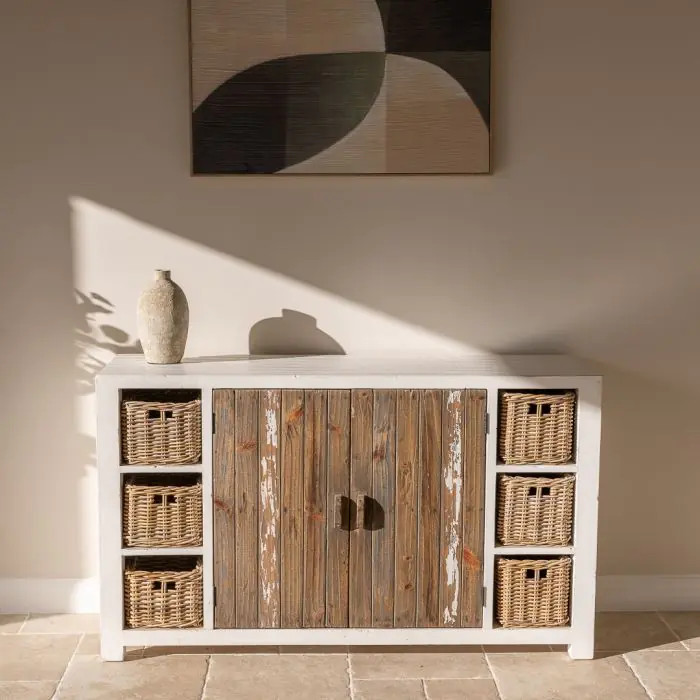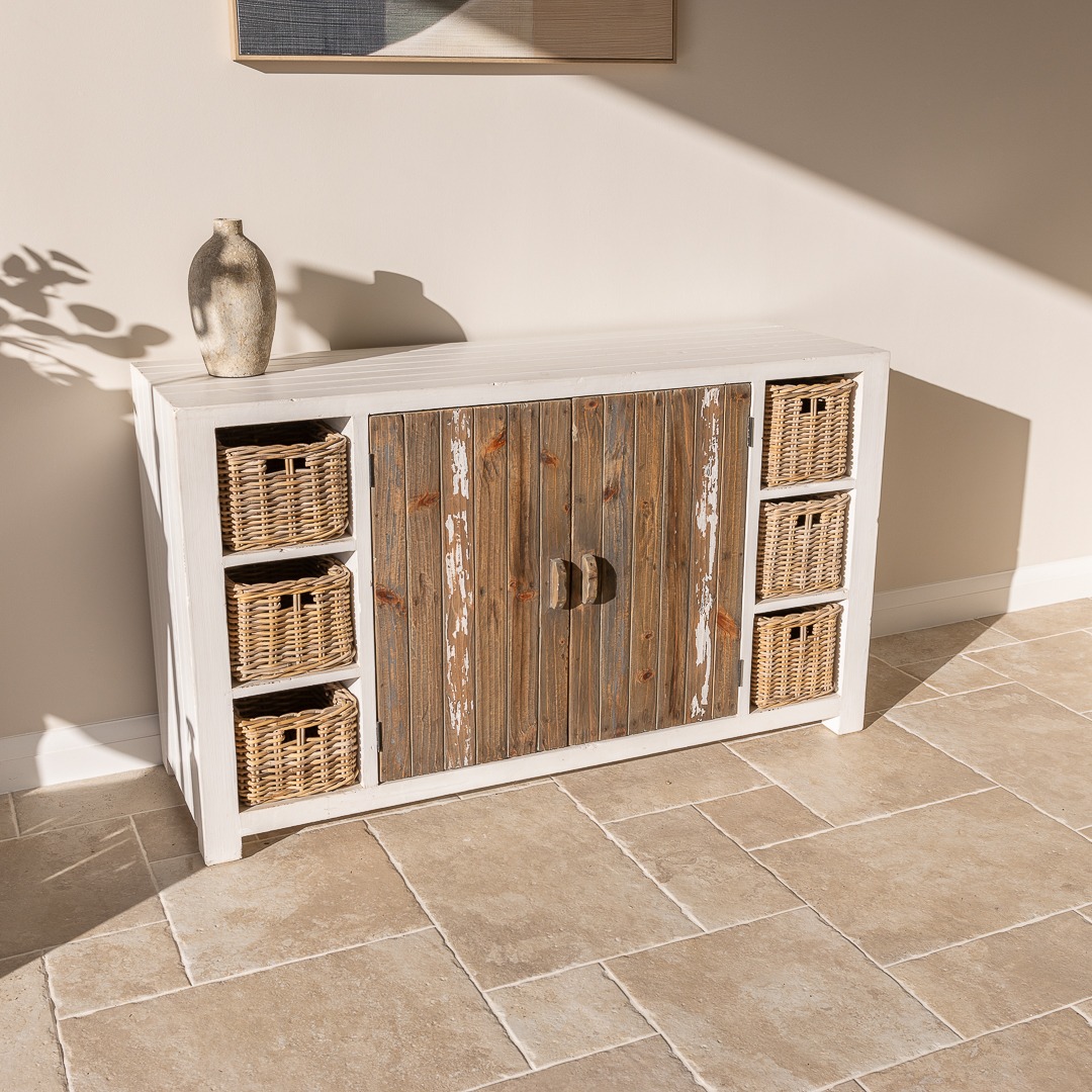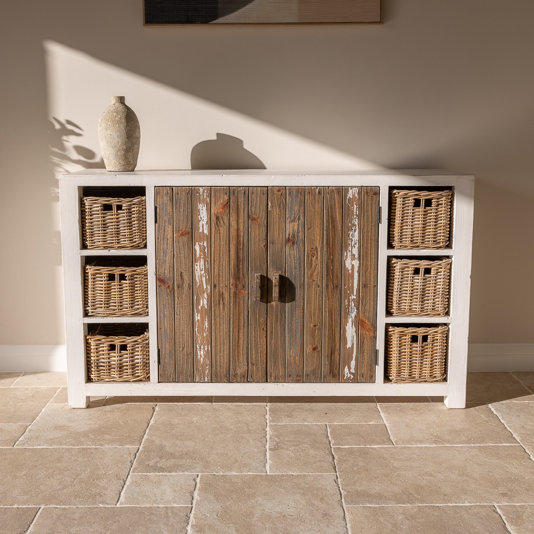 Our beautiful coastal style solid pine unit will breathe new life into your hallway, lounge or dining area, the perfect antidote to elaborate styling. This stunning coastal style dresser is the ultimate sustainable storage solution. Manufactured from Reclaimed pine with a grey wash finish, giving you that sought-after relaxed beach-house feel. Store everything from general clutter to magazines and DVD's, the perfect addition to any room of the house.