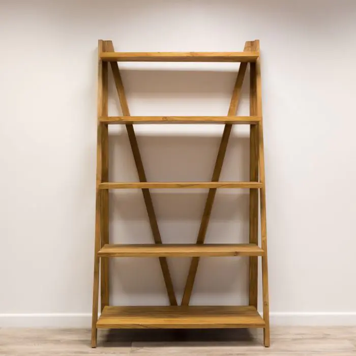 Our reclaimed teak large ladder shelf is the perfect stand-alone addition to your home, with its ergonomic design to hold what your heart desires, whether it be books, ornaments or your favourite pottery, the list is endless for this open-style storage solution. Available in two sizes plus a corner unit, we have created these shelves with both aesthetics and functionality in mind, whilst ensuring a positive environmental impact is adhered to. The classic ladder design is simplistic but packs a punch on a timeless trend that will complement any decor style, from country to modern. The natural golden tone creates a warm, cosy, and inviting atmosphere in your home, making this unit well-suited to a living room, hallway, home office, or even a bedroom. Manufactured from reclaimed teak, derived from old buildings, barns, and other hundreds of years old structures in Indonesia, the substantial timbers used are well seasoned, durable and heavy-duty to suit day-to-day life.