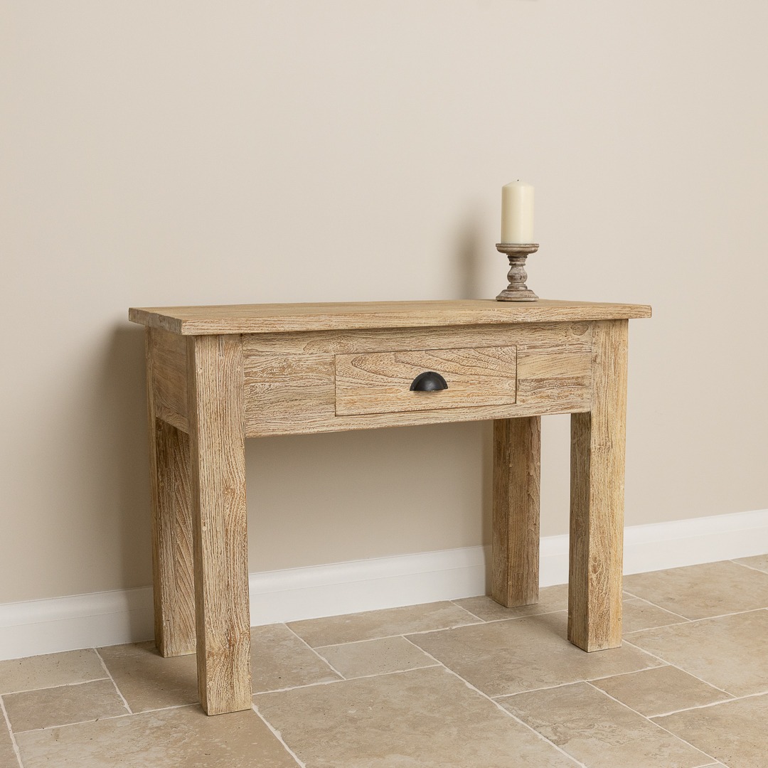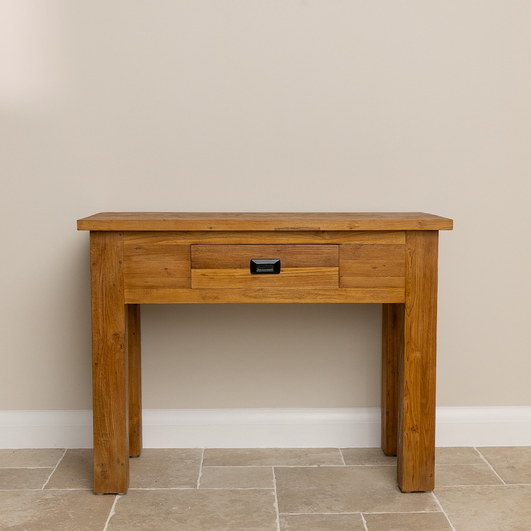 We love this seek unit! Not only is it practical and stylish this reclaimed teak table would look amazing in your home, perfect in a hallway or can be used as a useful table in the corner of your lounge. Manufcatured from reclaimed teak gicing this unit a chunky and solid appearance, it also features a practical drawer to hide away clutter.