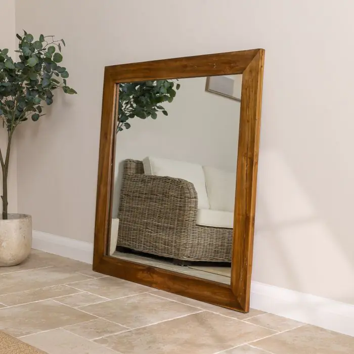 Our beautifully rustic reclaimed teak square mirror is manufactured from reclaimed teak sustainably sourced from ancient Colonial buildings. It has been given a fine wax finish to bring out the natural teak colour. Ideal for the living room, hallway, dining room or any other room that needs a transformation, this stylish and elegant mirror would also make a fabulous gift.