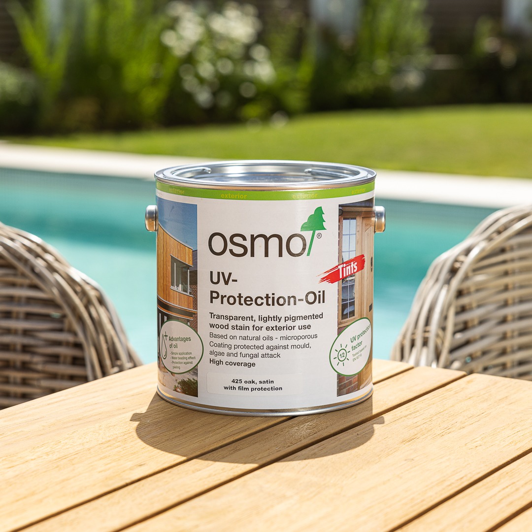 Suitable for use on our Douglas Fir, Swedish Redwood, Oak and Reclaimed Teak outdoor furniture This is a natural oil-based product with a micro-porous finish, which allows the wood to breathe, whilst giving protection against UV rays which cause the timber to grey and fade. Our UV Protection Oil is also water and dirt-resistant and helps to reduce wood swelling and shrinkage.