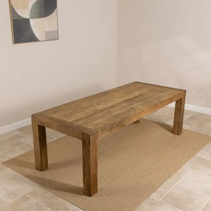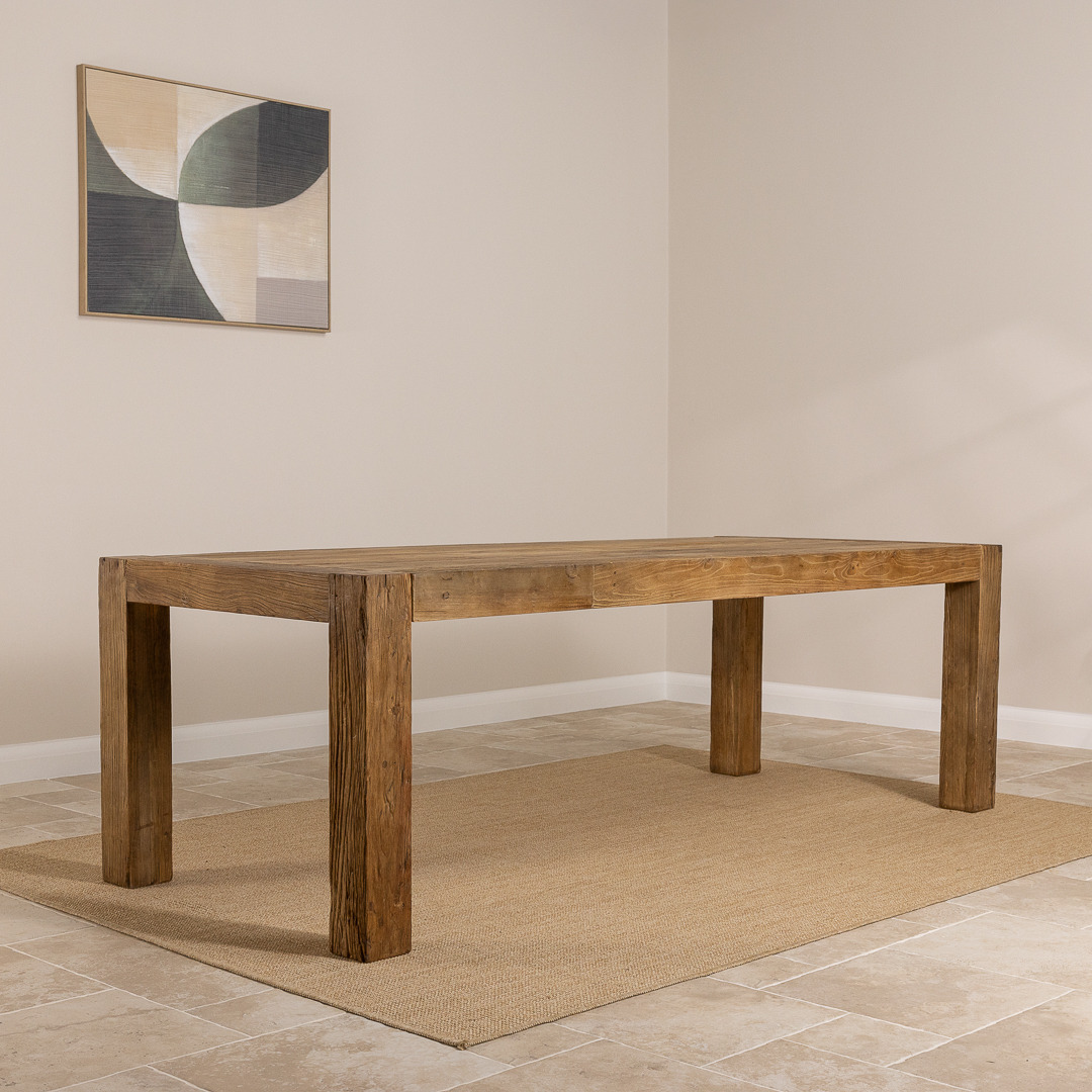 Manufactured from reclaimed Elm, which has been used previously for various purposes that have then been recycled and created into stunning pieces of furniture. Meaning the Elm that has been used has already been seasoned and weathered, making it a perfect, hard-wearing dining table that will suit the rigours of everyday busy family life. The chunky construction makes the Elm dining table an extremely sturdy statement piece that can be appreciated for years to come.